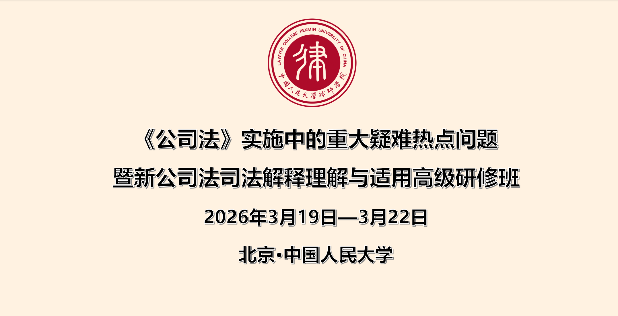 为帮助广大律师和公司法务深入学习公司法实际实施重点难点内容,正确理解新规则,深入学习最高人民法院新公司法司法解释的有关内容,研讨交流新形势下公司纠纷争议解决新思路、新办法,提高执业能力和水平,中国人民大学律师学院决定举办“《公司法》实施中的重大疑难热点问题暨新公司法司法解释理解适用高级研修班”。本次研修班拟邀请中国商法学研究会知名公司法名家、公司纠纷案件审判专家授课,课程将采取专家讲授、答疑与互动等形... [查看详情]