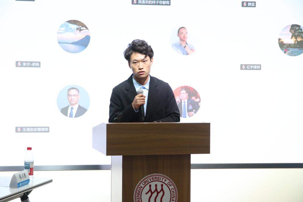 袁华之老师以“抬头看路,埋头拉车”为喻,提醒同学们在人生的长河中务必保证方向正确,唯有方向对了,速度才有意义,并相信在人大律师学院的培养下,大家总能站在历史正确的一边。